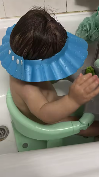The Baby Shower Hat keeps water, soap, and shampoo away from your baby’s eyes and ears, so you can wash their hair safely without crying or stress. Soft, adjustable, and super easy to use — it makes bath time faster, safer, and way more comfortable for both you and your little one
